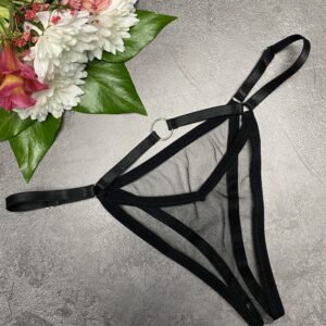 These beautiful transparent panties are made of ultra transparent mesh. Decorated with a big metal ring. Lightweight, just weightless, it makes you feel like you’re wearing nothing and it’s just so comfortable. Adjustable straps for maximum comfort.