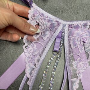 These gorgeous pearled crotch panties are made of delicate sheer lace and decorated with pearls and large silk bow.