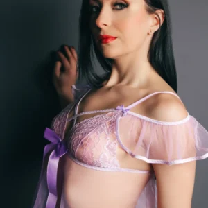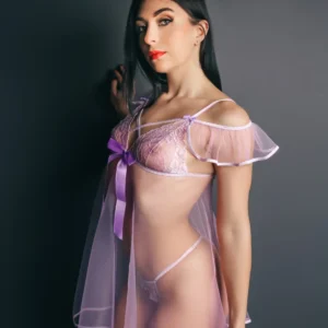 The lavender transparent babydoll with big silk bow is a captivating and dreamy lingerie piece. Its sheer, transparent fabric in a soothing lavender shade creates an enchanting and sensual allure. The highlight of this babydoll is the big silk bow, adding a touch of elegance and playfulness to the design.