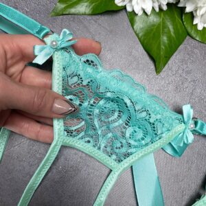 These super sexy crotchless panties are made of delicate sheer lace. Decorated with silk bows. Has adjustable straps for a better fit and maximum convenience. These erotic panty will add a lot of spice to your look.