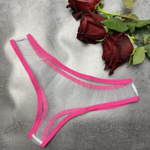These hot sheer panties are made of a delicate white mesh with bright colored trim.
