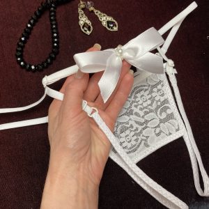 These super sexy crotchless panties are made of a delicate sheer lace. Decorated with pearls and bows. Has adjustable straps for a better fit and maximum convenience. These erotic panty will add a lot of spice to your look.