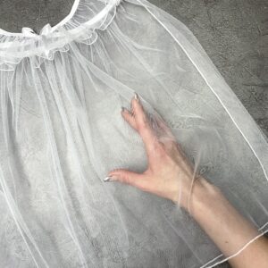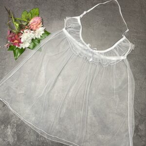 Materials: transparent mesh, adjustable straps, elastic, small silk bow.